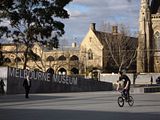A robot going to the middle of the Treasury Gardens to investigate suspicious rubish bins.